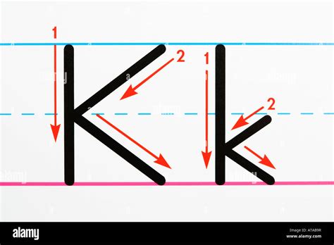 Close up of letter K handwriting practice page Stock Photo Alamy